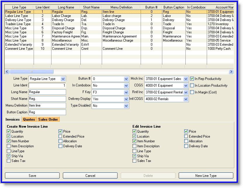 Numerous system configurations may be defined within the tool, including the following: payment terms, payment types, shipping methods, company information, locations, regions, trucks, sales representatives, inventory item types, line item types, lead sources and state, and county and city sales tax.